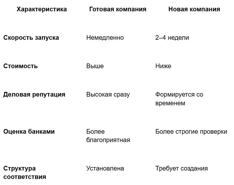 Готовая компания vs новая компания (сравнение)